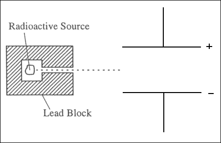 c) Describe how a, b, and g rays each behave when they pass through an electric field. Use the diagram below to illustrate your answer.