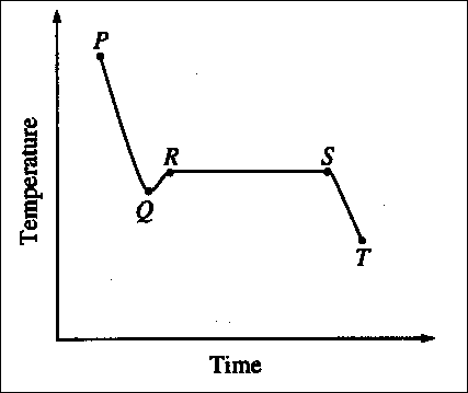 25. The cooling curve for a pure substance as it changes from a liquid to a solid is shown right. The solid and the liquid coexist at